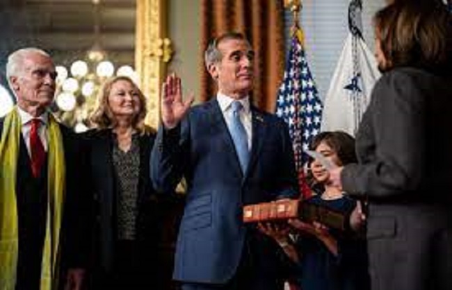 उल्लेखनीय है कि लॉस एंजिल्स के पूर्व मेयर एरिक गार्सेटी भारत में अमेरिका के नए राजदूत नियुक्त किये गए हैं। बीते 24 मार्च को ही अमेरिका की उपराष्ट्रपति कमला हैरिस ने एरिक गार्सेटी को पद और गोपनीयता का शपथ दिलाई थी। गार्सेटी का नामांकन बीते माह ही अमेरिका की संसद ने मंजूर किया था।