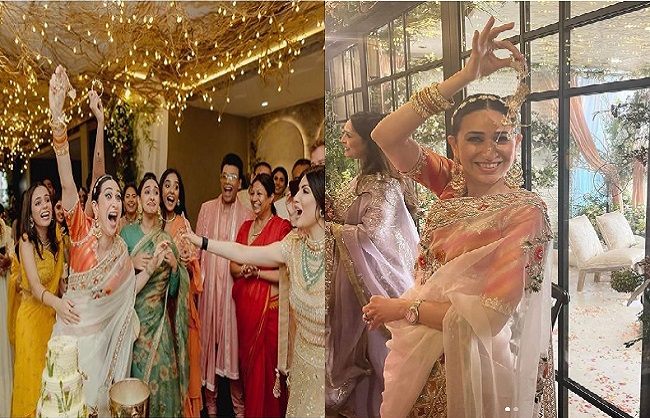 रणबीर कपूर और आलिया भट्ट की शादी के बाद अब फैंस को अभिनेत्री करिश्मा कपूर के हाथ पीले होने का इंतजार है। रणबीर-आलिया की शादी में करीना कपूर खान, करिश्मा कपूर, सैफ अली खान, करण जौहर, अयान मुखर्जी, आकांक्षा रंजन और आदर जैन सहित कई लोग शामिल हुए थे। अब सेलेब्स रणबीर कपूर और आलिया भट्ट की शादी की कई इनसाइड पिक्स लगातार शेयर कर रहे हैं। करिश्मा कपूर ने भी इस शादी में अपने साथ हुए एक दिलचस्प किस्से को फैंस के साथ साझा किया है। करिश्मा कपूर ने आलिया की कलीरे सेरेमनी के दौरान की कुछ तस्वीरें इंस्टाग्राम पर शेयर करते हुए लिखा-”इंस्टाग्राम वर्सेज रिएलिटी। कलीरा मुझ पर गिरा!’