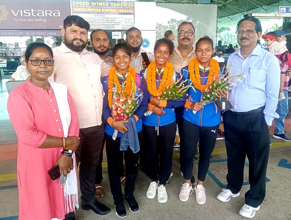 उन्होंने बताया कि खिलाड़ियों के एयरपोर्ट से बाहर निकलते ही हॉकी झारखंड के पदाधिकारियों ने तीनों खिलाड़ियों को बुके और फूल माला पहनाकर उनका स्वागत किया। हॉकी झारखंड के द्वारा स्वागत कार्यक्रम में महासचिव विजय शंकर सिंह, सीईओ रजनीश कुमार कोषाध्यक्ष आश्रिता लाकड़ा,संयुक्त सचिव माइकल लाल सहित हॉकी झारखंड के अन्य पदाधिकारी उपस्थित थे। एयरपोर्ट में स्वागत करने के बाद तीनों खिलाड़ियों को हॉकी झारखंड के कार्यालय रांची लाया गया जहां हॉकी झारखंड के अध्यक्ष भोलानाथ सिंह ने तीनों खिलाड़ियों का स्वागत किया।