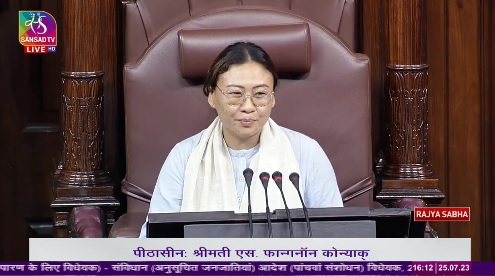 नई दिल्ली- 25 जुलाई। नागालैंड की पहली महिला राज्य सभा सदस्य एस. फांगनोन कोन्याक ने मंगलवार को सदन की अध्यक्षता की। इससे पहले उन्होंने 17 जुलाई को उप सभापति पैनल में नागालैंड से नियुक्त होने वाली पहली महिला सदस्य बनकर इतिहास रचा था।