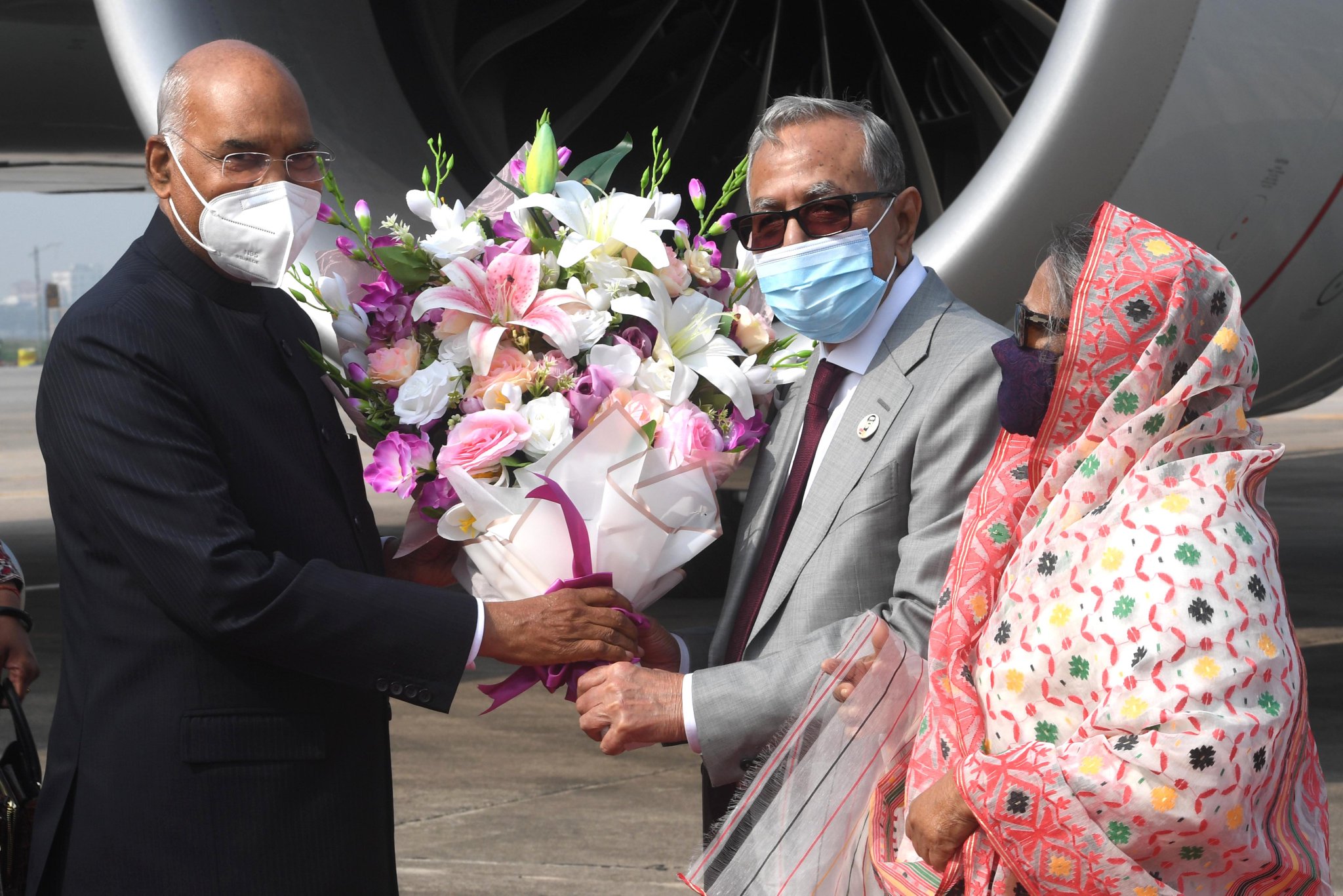 राष्ट्रपति राम नाथ कोविन्द,उनकी पत्नी सविता कोविन्द एवं बेटी स्वाति कोविन्द यहां ढाका में एयर इंडिया वन की फ्लाइट से आधिकारिक प्रतिनिधि मंडल के साथ पहुंचे। राष्ट्रपति अब्दुल हमीद ने पत्नी रशीदा खानम के साथ ढाका के हजरत शाहजलाल अंतरराष्ट्रीय हवाई अड्डे पर उनकी आगवानी की।