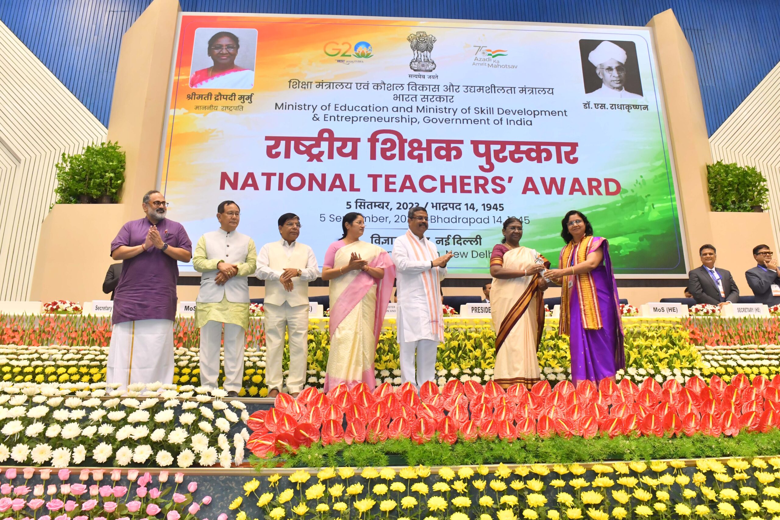 नई दिल्ली-05 सितंबर। राष्ट्रपति द्रौपदी मुर्मू ने मंगलवार को शिक्षक दिवस के अवसर पर विज्ञान भवन में आयोजित एक समारोह में देश भर के शिक्षकों को राष्ट्रीय पुरस्कार प्रदान किए। इस अवसर पर राष्ट्रपति ने कहा कि प्रारंभिक शिक्षा का किसी के भी जीवन में मौलिक महत्व है। कई शिक्षाविद् बच्चों के संतुलित विकास के लिए थ्री-एच फॉर्मूले की बात करते हैं। जिसमें पहला एच हार्ट, दूसरा एच हेड और तीसरा एच हैंड है।