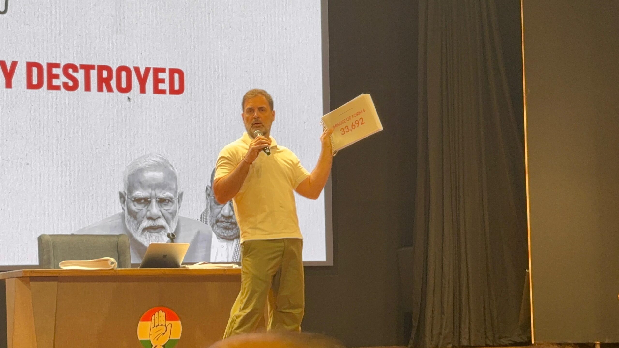 राहुल गांधी ने यहां कांग्रेस मुख्यालय में प्रेस कॉन्फ्रेंस में कर्नाटक की बेंगलुरु सेंट्रल लोकसभा सीट और महादेवपुरा विधानसभा सीट के आंकड़ों के विश्लेषण के आधार पर आरोप लगाया कि इन इलाकों में करीब एक लाख वोटों की चोरी हुई है। उन्होंने दावा किया कि सिर्फ इन दो क्षेत्रों की 6.26 लाख वोटर लिस्ट में 1,00,250 वोट संदिग्ध पाए गए हैं। उन्होंने इस डाटा के विश्लेषण से 6 लाख 25 हजार कुल वोटरों में 1,00,250 वोटर फर्जी होने का दावा किया। उन्होंने कहा कि 11,965 डुप्लीकेट वोटर, 40,009 फर्जी या अमान्य पते मिले, 10,452 एक ही पते पर असामान्य संख्या में वोटर पाए गए, 4,132 लोगों की अमान्य या गायब तस्वीरें मिलीं और 33,692 फॉर्म 6 का दुरुपयोग के मामले सामने आए हैं।