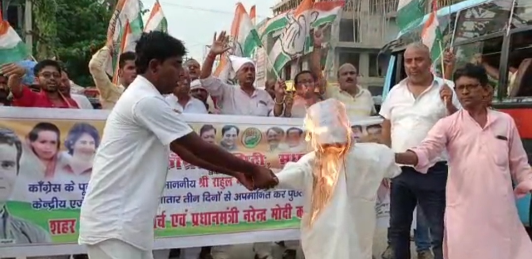 राहुल, सोनिया पर ED की कार्रवाई के खिलाफ कांग्रेस कार्यकर्ताओं ने पीएम मोदी का फुंका पूतला