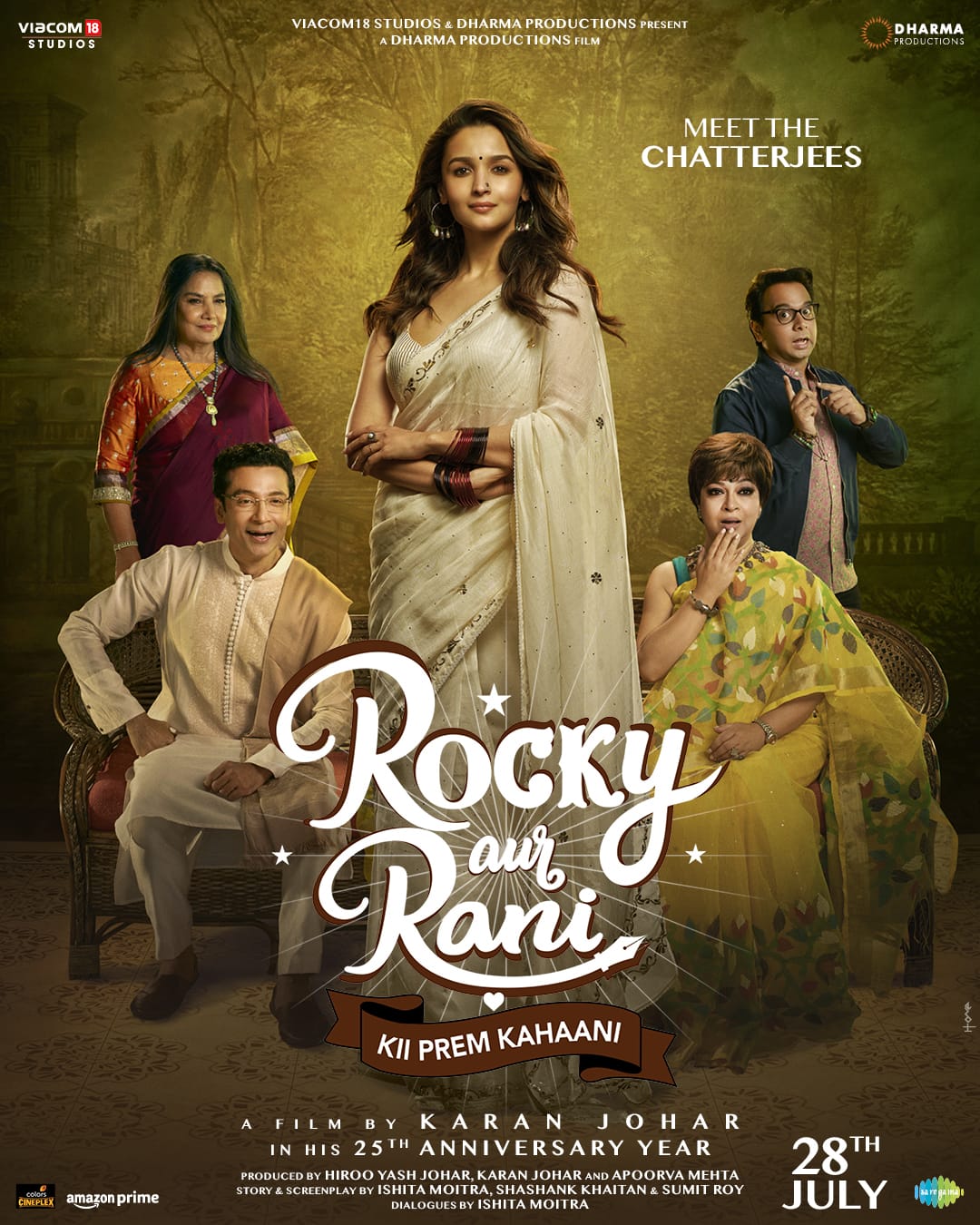 बॉलीवुड के मशहूर निर्माता-निर्देशक करण जौहर ने अपने 51वें जन्मदिन और फिल्मी करियर की अपनी 25वीं वर्षगांठ के मौके पर अपनी आने वाली फिल्म ”रॉकी और रानी की प्रेम कहानी” का फर्स्ट लुक जारी किया गया। इस फिल्म में आलिया भट्ट और रणवीर सिंह हैं। करण के पारिवारिक बैनर धर्मा प्रोडक्शंस द्वारा अपने सोशल मीडिया अकाउंट पर दो पोस्ट साझा किए। एक में रानी के रूप में आलिया भट्ट का लुक नजर आ रहा है तो वहीं दूसरे में रॉकी के रूप में रणवीर सिंह अपने अंदाज में नजर आ रहे हैं। पोस्टर रिलीज होते ही इंटरनेट पर ट्रेंड करना शुरू कर दिया था। फैंस को रणबीर और आलिया का यह लुक खूब पसंद आ रहा है। इंस्टाग्राम पर करण जौहर ने लिखा कि, ”मिलिए रॉकी से जो हमेशा अपना दिल अपने हाथ पर लेकर चलता है। रॉकी और रानी की प्रेम कहानी 28 जुलाई, 2023 को सिनेमाघरों में…।”