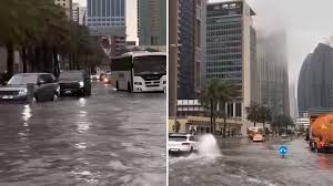 दुबई- 17 अप्रैल। रेगिस्तान में पानी को तरसने वाले अब पानी में डूबकर मर रहे हैं। ऐसा कुछ संयुक्त अरब अमीरात (यूएई) और उसके आसपास के देशों में मंगलवार को देखने को मिला। यूएई में भारी बारिश से प्रमुख राजमार्गों के कुछ हिस्सों में पानी भर गया और पूरे दुबई में वाहन सड़कों पर जगह-जगह खड़े हो गए। दुनिया के व्यस्ततम हवाई अड्डों में से एक दुबई इंटरनेशनल एयरपोर्ट (डीएक्सबी) पर करीब 25 मिनट संचालन बंद रहा।