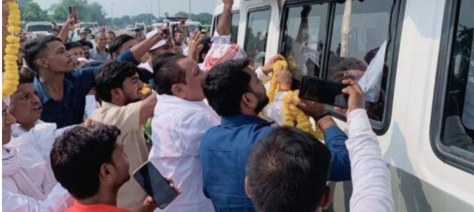 लालू यादव के छपरा पहुंचने पर झलक पाने को बेकाबू हुए कार्यकर्ता, पुलिसकर्मी जख्मी