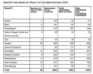लोकसभा चुनाव के तीसरे चरण में 94 सीटों के लिए 1351 उम्मीदवार मैदान में