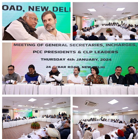खड़गे ने गुरुवार को पार्टी मुख्यालय में आयोजित एआईसीसी महासचिवों, प्रभारियों,प्रदेश कांग्रेस अध्यक्षों और राज्यों में कांग्रेस विधानसभा दल के नेताओं की बैठक के दौरान कहा कि इस बैठक का एजेंडा 2024 के लोक सभा चुनाव में विजय सुनिश्चित करने और भारत न्याय यात्रा की विस्तार से तैयारी करनी है। हमारे लिए दोनों की सफलता जरूरी है, इसलिए हम सबको इस बीच में काफी समय देना है और चर्चा करना है।