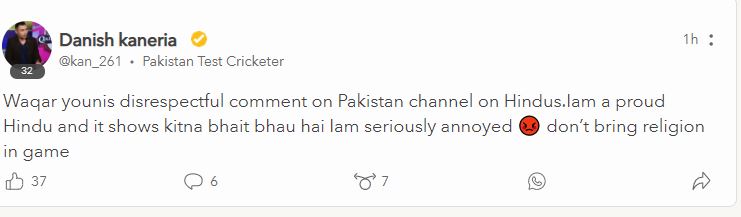 वकार यूनुस के बयान पर दानिश कनेरिया ने नाराजगी, कहा: धर्म को खेल में मत लाओ!