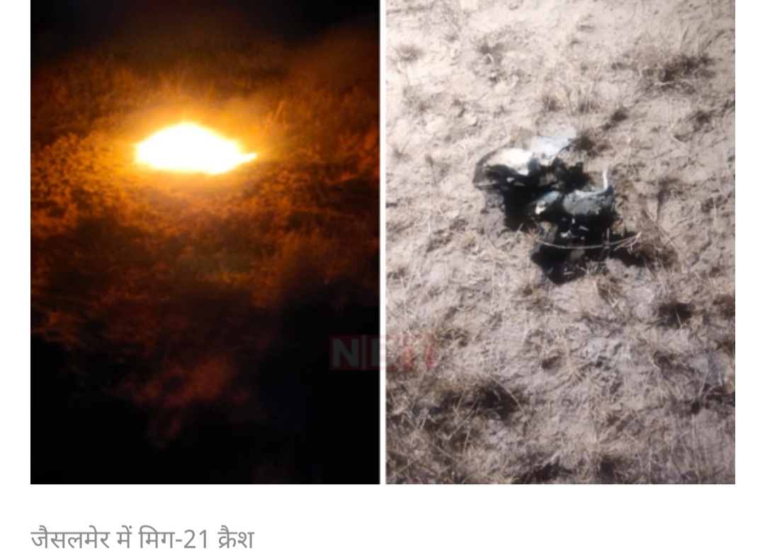 जोधपुर-25 दिसम्बर। पश्चिमी राजस्थान के जैसलमेर जिले के सम थाना क्षेत्र में शुक्रवार रात को वायुसेना का लड़ाकू विमान मिग-21 क्रैश हो गया। यह विमान प्रशिक्षण उड़ान पर था। क्रैश के बाद विमान में भीषण आग लग गई। हादसे में विमान को उड़ा रहे विंग कमांडर हर्षित सिन्हा की मौत हो गई। देर रात भारतीय वायुसेना ने ट्वीट कर यह जानकारी दी। वायुसेना ने जांच के आदेश दिए हैं।