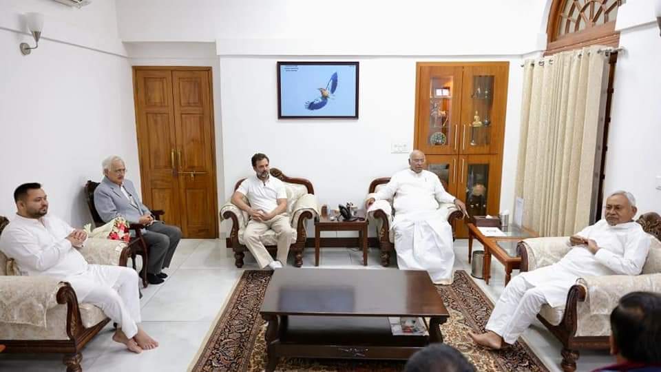 विपक्ष की एकजुटता: खड़गे और राहुल से मिले बिहार के सीएम नीतीश व डिप्टी सीएम तेजस्वी