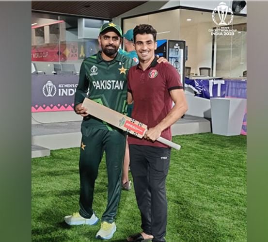 नई दिल्ली- 24 अक्टूबर। पाकिस्तान क्रिकेट टीम के कप्तान बाबर आजम ने सलामी बल्लेबाज रहमानुल्लाह गुरबाज़ को अपना बल्ला उपहार में दिया, जिन्होंने 53 गेंदों पर शानदार 65 रन बनाकर अफगानिस्तान को मौजूदा विश्व कप में पाकिस्तानी टीम के खिलाफ ऐतिहासिक जीत दिलाने में महत्वपूर्ण भूमिका निभाई।