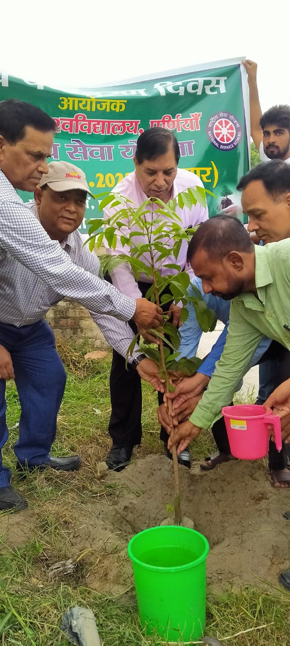 पूर्णिया। 05 मई। राष्ट्रीय सेवा योजना इकाई पूर्णिया विश्वविद्यालय,पूर्णिया के तत्वावधान में रविवार को विश्व पर्यावरण दिवस के अवसर पर कुलपति प्रोफेसर आरएन यादव की अध्यक्षता में विश्वविद्यालय परिसर में वृक्षारोपण कार्यक्रम आयोजित किया गया। इस अवसर पर कुलपति ने अपने संबोधन में कहा कि संयुक्त राष्ट्र संघ ने वैश्विक स्तर पर पर्यावरण की समस्या और चिंता विषय पर 1972 में स्वीडन की राजधानी स्टॉकहोम में पर्यावरण सम्मेलन आयोजित किया जिसमें 119 देशों के राज्याध्यक्षों ने भागीदारी की थी। सम्मेलन में प्रत्येक वर्ष 05 जून को विश्व पर्यावरण दिवस मनाने का निर्णय लिया गया।