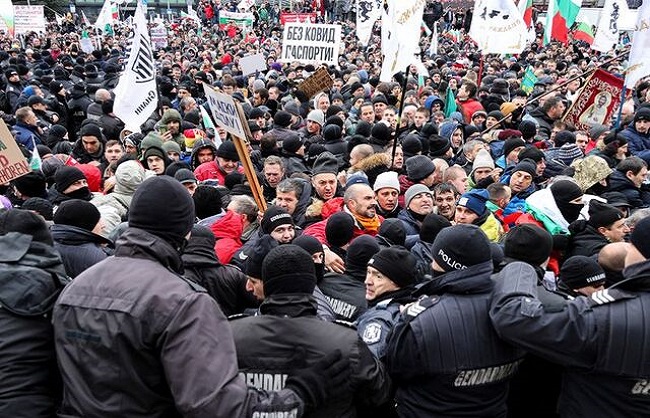 वैक्सीन विरोधी प्रदर्शनकारियों ने बुल्गारिया की संसद को घेरा, झड़प में कई घायल