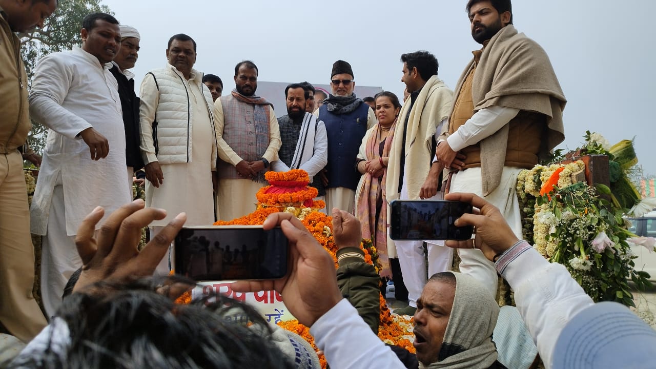मधुबनी/दरभंगा-05 फरवरी। रविवार को समाजवादी नेता एवं पूर्व केंद्रीय मंत्री दिवंगत शरद यादव की अस्थि कलश यात्रा पटना से दरभंगा होते हुए मधुबनी के सकरी पहुंची। पूर्व केन्द्रीय मंत्री देवेंद्र प्रसाद यादव एवं बिहार सरकार के मंत्री ललित यादव के नेतृत्व में हजारों कार्यकर्ता द्वारा दरभंगा सीमा से अगुवाई करते हुए सकरी में अस्थि कलश लाया गया।