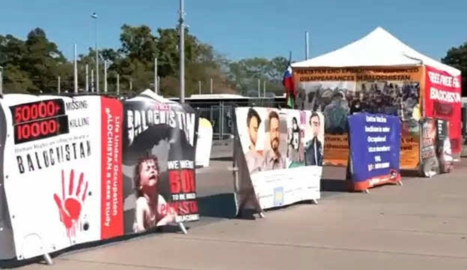 स्विटजरलैंड के जेनेवा में संयुक्त राष्ट्र मानवाधिकार परिषद की बैठक चल रही है। बैठक स्थल के बाहर बलूचिस्तान की आजादी के समर्थकों ने तमाम बैनर लगाए हुए हैं। बीच-बीच में पाकिस्तानी सेना के खिलाफ प्रदर्शन भी चल रहे हैं। संयुक्त राष्ट्र मानवाधिकार परिषद के कार्यालय के बाहर बलूचिस्तान की आजादी के समर्थकों ने तीन दिवसीय फोटो प्रदर्शनी का आयोजन किया है। इस फोटो प्रदर्शनी के जरिए बलूचिस्तान में हो रहे मानवाधिकारों के हनन को दर्शाया गया है।