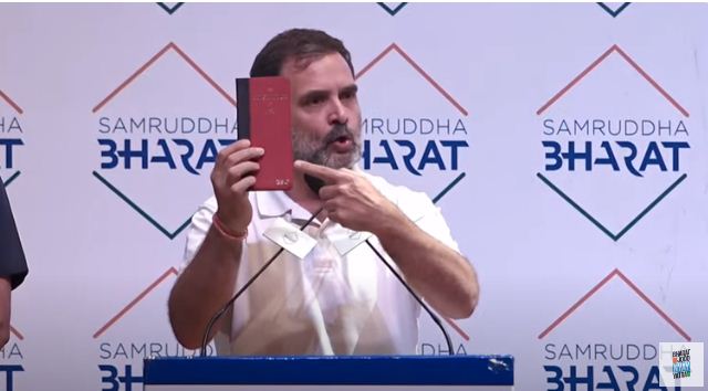 राहुल गांधी बुधवार की शाम पंचकूला में समु्रद्ध भारत फाउंडेशन कीे ओर से आयोजित संविधान सम्मान सम्मेलन को संबोधित कर रहे थे। उन्होंने कहा कि संविधान केवल किताब नहीं बल्कि ट्रांसफर ऑफ पावर है। इस देश में 90 फीसदी दलित, आदिवासी, ओबीसी हैं लेकिन देश के नेरेटिव में उनकी कोई हिस्सेदारी नहीं है। हर फ्रंट पर केवल दस प्रतिशत लोग ही मौजूद हैं। राहुल गांधी ने मीडिया के एक वर्ग की आलोचना करते हुए कहा कि मीडिया के एजेंडे आज किसान,मजदूर,नाई,बड़ई,सफाई कर्मचारी सब बाहर हो चुके हैं।