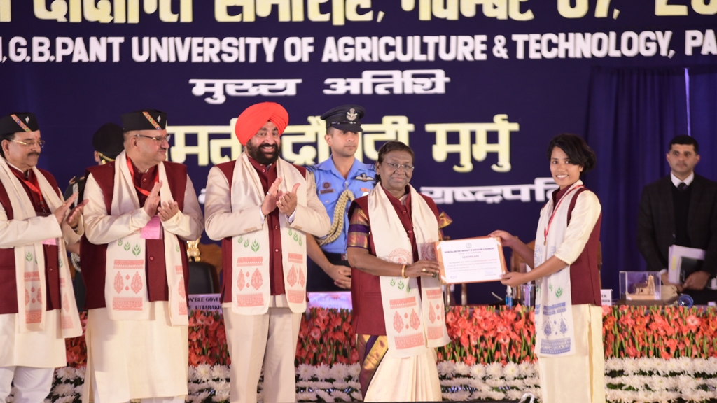 राष्ट्रपति ने कहा कि सम्पूर्ण विश्व इस वर्ष को अंतरराष्ट्रीय मोटा अनाज वर्ष के रूप में मना रहा है। उत्तराखंड मोटे अनाज के उत्पादन में अग्रणी राज्य है। देश में हरित क्रांति लाने में पन्तनगर विश्वविद्यालय का विशेष योगदान रहा है, जिसके फलस्वरूप देश फूड ग्रेन उत्पादन में न सिर्फ आत्मनिर्भर बना है, बल्कि आज हम कृषि उपज के प्रमुख निर्यातकों में से एक है। उन्होंने सभी उपाधि प्राप्त करने वाले छात्र-छात्राओं,शिक्षकों और उनके अभिभावकों को बधाई देते हुए कहा कि सभी विद्यार्थी भारत जैसे विविधतापूर्ण एवं गतिशील देश की विरासत को और अधिक समृद्ध व भविष्य को और अधिक सशक्त बनाने में अपना योगदान देंगे।