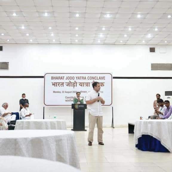 नई दिल्ली- 22 अगस्त। कांग्रेस के पूर्व अध्यक्ष राहुल गांधी ने कहा कि भारत जोड़ो अभियान समय की मांग की है। राहुल ने सोमवार को दिल्ली के कॉन्स्टीट्यूशन क्लब में भारत जोड़ो यात्रा की बैठक के दौरान सिविल सोसायटी के प्रतिनिधियों से बातचीत करते हुए कहा कि वह भारत जोड़ो अभियान के लिए निकलेंगे। उन्होंने कहा कि कांग्रेस अब रुकने वाली नहीं है। इस यात्रा में अगर लोग नहीं भी आएंगे तो वह अकेले ही यात्रा शुरु कर देंगे।