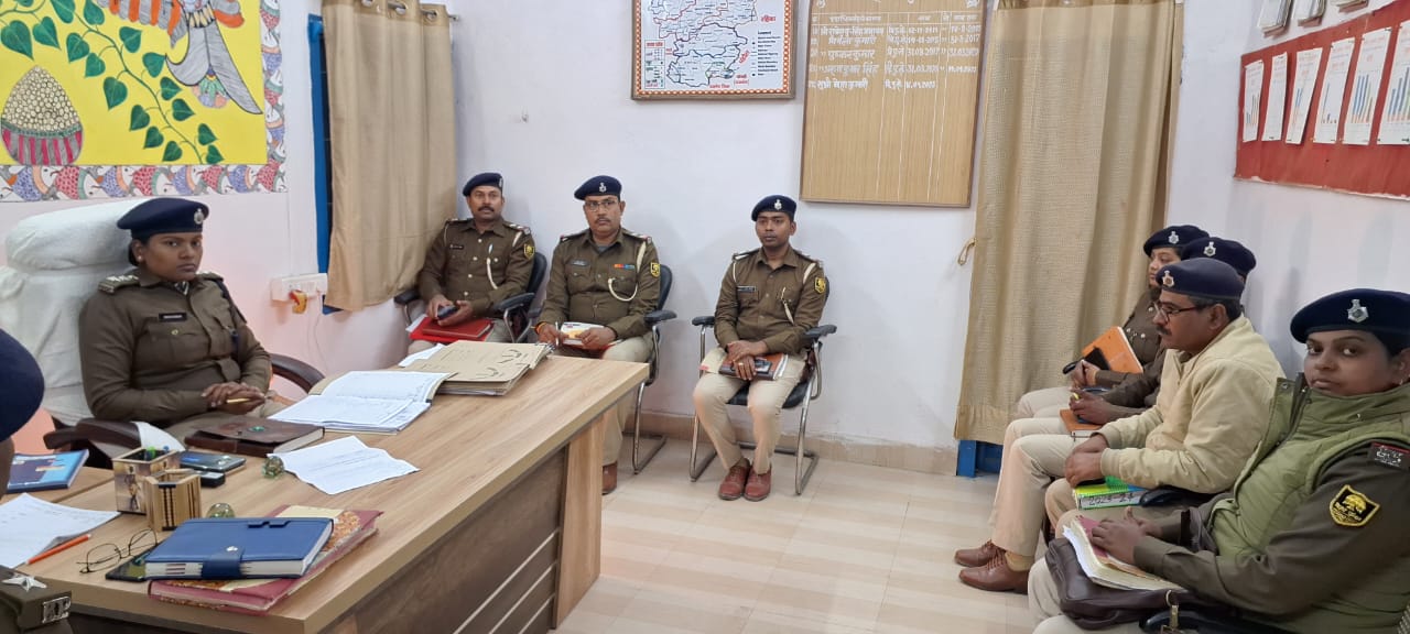 मधुबनी- 05 फरवरी। बेनीपट्टी अनुमंडल पुलिस पदाधिकारी के कार्यालय प्रकोष्ठ में एसडीपीओ नेहा कुमारी के अध्यक्षता में सोमवार को मासिक अपराध गोष्ठी का आयोजन किया गया। बैठक में सर्किल इंस्पेक्टर नीरज कुमार वर्मा सहित अनुमंडल के सभी एसएचओ व ओपीध्यक्ष मौजूद थे। बैठक में अपराध पर नकेल,गृहभेदन की घटना के रोकथाम,गश्ती समय पर निकालने,बैंक व एटीएम का समय-समय पर जांच करने,लंबित वारंट का निष्पादन,कुर्की जब्ती का तामिला कराये जाने और कांड के समय पर निष्पादन पर गहन चर्चा की गई। बैठक में एसडीपीओ ने सभी एसएचओ को आगामी सरस्वती पूजा को शांतिपूर्ण माहौल में सम्पन्न कराने के लिए असामाजिक तत्वों पर सीआरपीसी की धारा-107 की कार्रवाई करने को कहा, एसडीपीओ ने कहा कि, पूजा के दौरान किसी भी सूरत में डीजे का उपयोग नहीं होगा, अगर कही इसका उल्लघंन पाया गया तो डीजे संचालक और पूजा कमेटी पर कार्रवाई होगी। चोरियों की घटना पर लगाम लगाए जाने के लिए रोको-टोको अभियान को गति देने का निर्देश दिया, कहा कि, जो भी बाजार में संदिग्ध अवस्था में मिले, वैसे लोगों को जरूर रोक कर पूछताछ करें। इससे असामाजिक तत्वों में हड़कंप मचेगा। थानेदारों को थाना दिवस का आयोजन कर जमीनी विवाद को निपटारा कराये जाने का निर्देश दिया। इस दौरान एसडीपीओ ने सभी थानेदारों से गत माह में प्रतिवेदित कांड की वर्तमान स्थिति और अनुसंधान की जानकारी ली। तथा जल्द से जल्द कांड के निष्पादन करने का निर्देश दिया। बैठक में बेनीपट्टी एसएचओ सह पुलिस निरीक्षक गौतम कुमार, अरेर एसएचओ नेहा निधि,खिरहर एसएचओ सुप्रिया कुमारी, साहरघाट एसएचओ अरविंद कुमार आदि एसएचओ मौजूद थे।