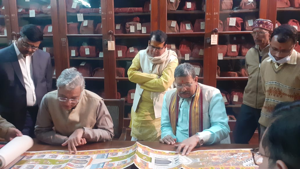 वाराणसी- 29 दिसम्बर। सुप्रीम कोर्ट के जज न्यायमूर्ति पीएस नरसिम्हा की गुरुवार को सम्पूर्णानन्द संस्कृत विश्वविद्यालय में खास मौजूदगी रही। विश्वविद्यालय में आये न्यायमूर्ति ने सरस्वती भवन में रखे एक लाख से अधिक दुर्लभ पाण्डुलिपियों को देखा। इसमें स्वर्णपत्र आच्छादित, लाक्षपत्र पर कमवाचा, स्वर्णाक्षरयुक्त रास पंचाध्यायी को देख न्यायमूर्ति अभिभूत नजर आये। न्यायमूर्ति ने धर्म शास्त्र एवं राजनीति शास्त्र के पुस्तकों का अवलोकन किया। इस दौरान उन्होंने कहा कि यह विश्वविद्यालय शास्त्रों से युक्त है। यहां की पांडुलिपियां अत्यंत दुर्लभ हैं। इसके समुचित संरक्षण एवं अध्ययन की आवश्यकता है। इसके पहले विश्वविद्यालय में आने पर न्यायमूर्ति का स्वागत कुलपति प्रो. हरेराम त्रिपाठी ने किया। प्रो. हरेराम त्रिपाठी ने न्यायमूर्ति को अंगवस्त्र, स्मृति चिन्ह एवं पुष्पगुच्छ प्रदान कर बताया कि सरस्वती भवन में रखे एक लाख से अधिक दुर्लभ पाण्डुलिपियों को रखा गया है। इस ग्रन्थालय में ढाई लाख पुस्तकें एवं ग्रंथ हैं। खास बात ये रही कि न्यायमूर्ति ने विवि में भ्रमण के दौरान भारतीय परिधान धोती, कुर्ता पहन रखा था। इस दौरान प्रो. हरिशंकर पांडेय, प्रो. सुधाकर मिश्र, प्रो. हरिप्रसाद अधिकारी, प्रो. राजनाथ, प्रो. हीरककान्ति चक्रवर्ती, प्रो. दिनेश कुमार गर्ग, प्रो. शैलेश कुमार, डॉ पद्माकर मिश्र आदि भी मौजूद रहे।