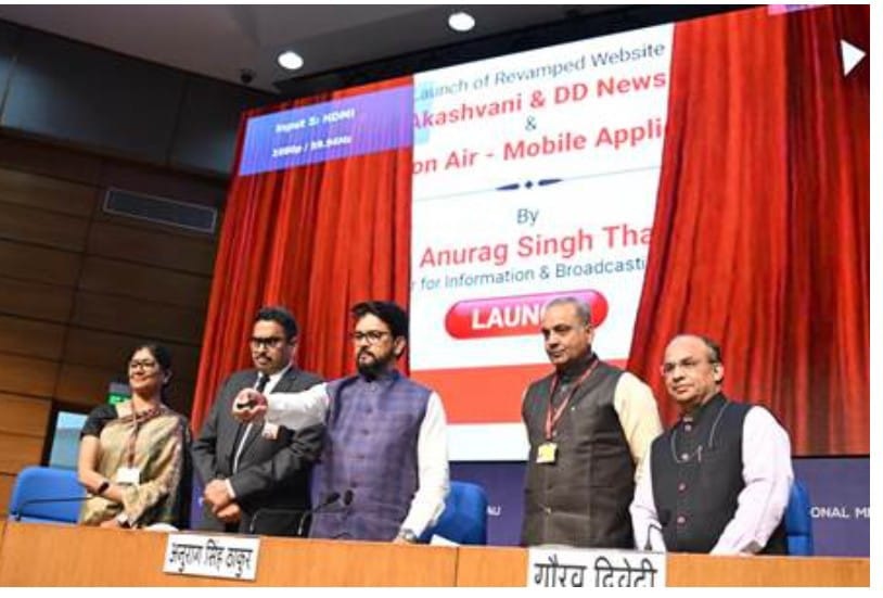 नई दिल्ली- 13 मार्च। केंद्रीय सूचना और प्रसारण मंत्री अनुराग सिंह ठाकुर ने बुधवार को राष्ट्रीय मीडिया केंद्र में आयोजित एक कार्यक्रम में प्रसार भारती की – प्रसारण और प्रसार के लिए ऑडियो विजुअल (पीबी-एसएचएबीडी) की शुरुआत की। इस मौके पर डीडी न्यूज और आकाशवाणी समाचार की वेबसाइटों के नए संस्करणों के साथ अपडेटेड न्यूज ऑन एयर मोबाइल ऐप भी लॉन्च किया गया।