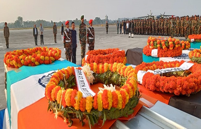 रक्षा प्रवक्ता ने बताया कि पोस्टमार्टम के बाद सभी पार्थिव शरीर शनिवार को पश्चिम बंगाल के बागडोगरा हवाई अड्डे पर लाये गए। शनिवार दोपहर 12.30 से अपराह्न दो बजे के बीच बागडोगरा हवाई अड्डे के तकनीकी क्षेत्र में पुष्पचक्र अर्पित करके उन्हें श्रद्धांजलि दी गई। प्रवक्ता ने कहा कि इसके बाद सभी पार्थिव शरीरों को उनके पैतृक घरों को भेजने की प्रक्रिया शुरू की गई। इनमें से 13 कर्मियों के पार्थिव शरीरों को उनके गृह नगरों के निकटवर्ती हवाई अड्डों पर ले जाया गया, जबकि तीन को सड़क मार्ग से भेजा गया है।