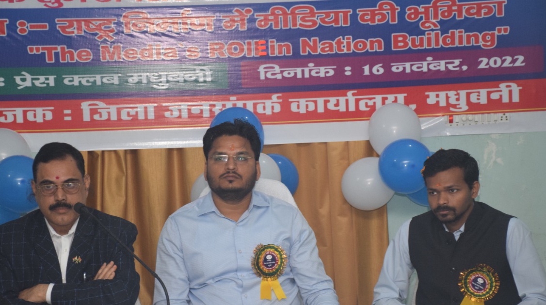 मधुबनी- 16 नवंबर। सूचना एवं जनसम्पर्क विभाग मधुबनी के तत्वाधान में प्रेस क्लब मधुबनी के संवाद कक्ष में प्रेस दिवस पर परिचर्चा का आयोजन किया गया। जिसका उद्घाटन जिलाधिकारी अरविन्द कुमार वर्मा,डीडीसी विशाल राज, डीपीआरओ परिमल कुमार एवं वरीय प्रेस प्रतिनिधियों ने संयुक्त रूप दीप प्रज्वलित करके किया। इसके पूर्व डीएम-एसपी सहित सभी अतिथियों का स्वागत उन्हें गुलाब का फूल एवं उनके मष्तक पर तिलक लगाकर किया गया। डीपीआरओ परिमल कुमार ने आगत अतिथियों का स्वागत करते हुए परिचर्चा के विषय एवं प्रेस दिवस को लेकर संक्षिप्त जानकारी दिया। जिलाधिकारी ने अपने संबोधन में कहा कि मीडिया लोकतंत्र के चैथे स्तंभ के रूप में अपनी महत्वपूर्ण भूमिका का निर्वहन कर रहा है। उन्होंने कहा कि राष्ट्रीय प्रेस दिवस प्रेस की स्वतंत्रता के साथ-साथ प्रेस की जिम्मेदारियों की ओर भी हमारा ध्यान आकृष्ट करता है। उन्होंने कहा कि किसी भी अभियान को जन आंदोलन का रूप देने में मीडिया की काफी महत्वपूर्ण भूमिका है, आज निष्पक्षता की जवाबदेही मीडिया के समक्ष सबसे बड़ी जवाबदेही है।