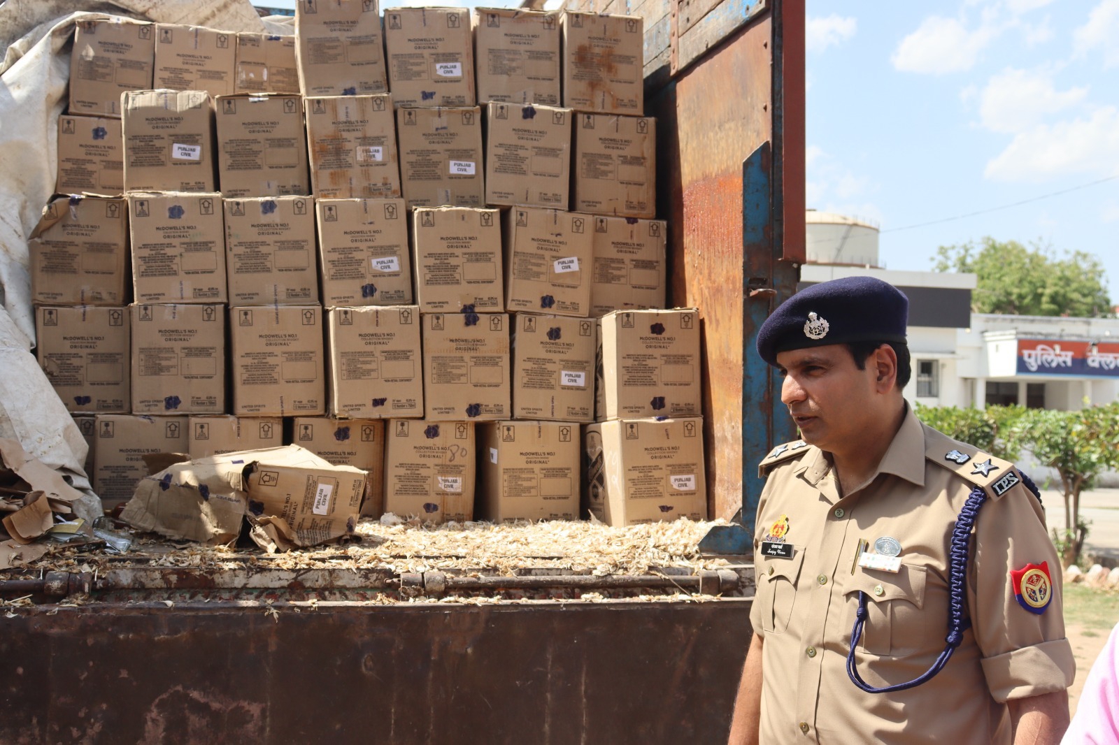 सूचना पर पुलिस ने तत्काल कार्यवाही करते हुए चौपुला कट से बरालोकपुर की ओर जाने वाले रास्ते पर संजीव होटल के पास एक ट्रक को पकड़ा। हिरासत में लेकर ट्रक की तलाशी लेने पर लहसुन की बोरियों के नीचे पंजाब और हरियाणा ब्रांड की भारी मात्रा में अंग्रेजी शराब बरामद हुई। इसके अलावा चालक के पास से बीस हजार साठ रुपए नगद, दो मोबाइल फोन बरामद किए हैं।