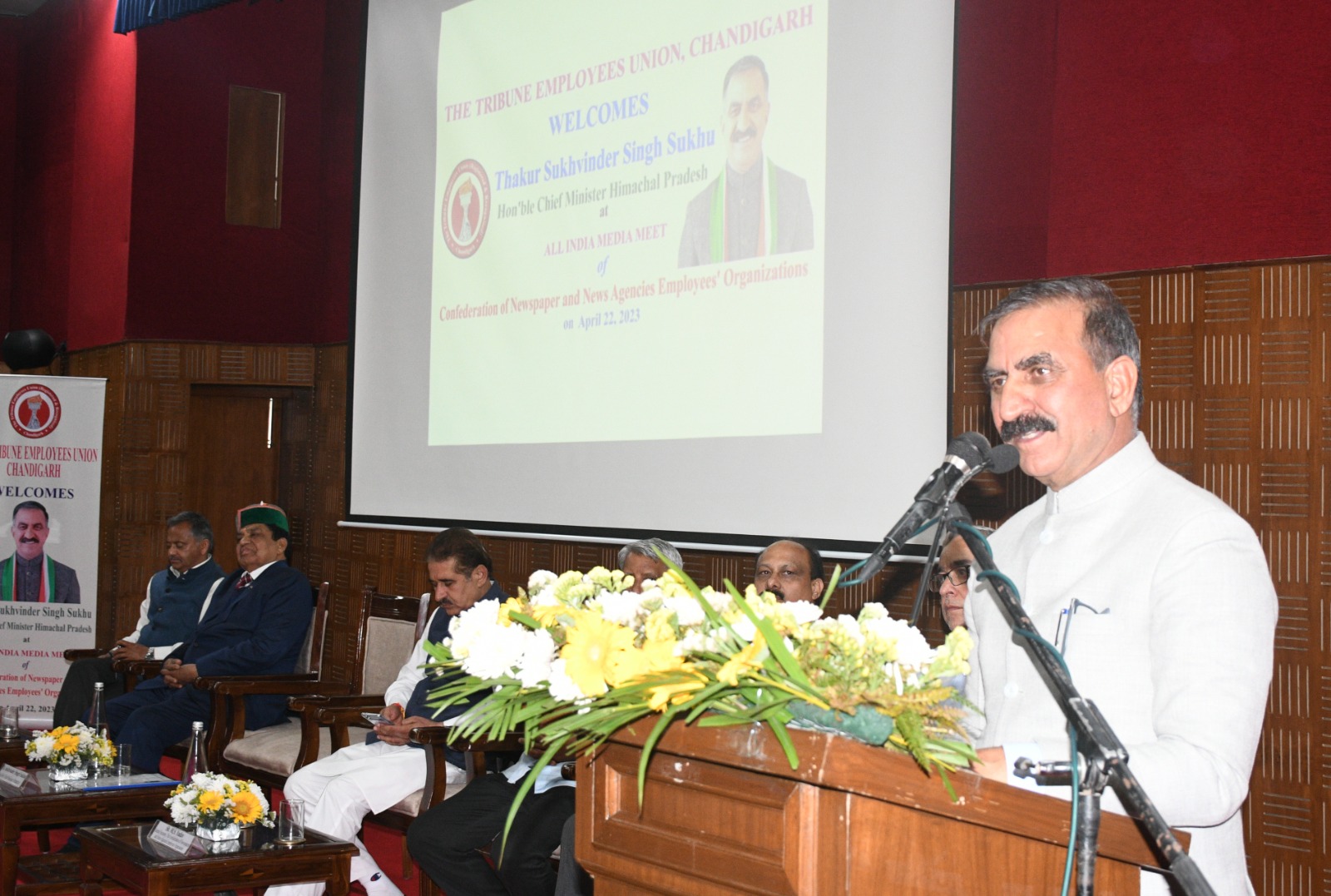 शिमला- 22 अप्रैल। मुख्यमंत्री ठाकुर सुखविंदर सिंह सुक्खू ने कहा कि हिमाचल प्रदेश में पत्रकारों को सामाजिक सुरक्षा प्रदान करना प्रदेश सरकार के विचाराधीन है। सामाजिक रूप से सुरक्षित पत्रकार सदैव अभिव्यक्ति की स्वतंत्रता को बनाए रखेगा। सुक्खू शनिवार को चण्डीगढ़ में द कॉन्फेडरेशन ऑफ न्यूजपेपर्स एण्ड न्यूज एजेंसी एम्प्लॉइज आर्गेनाइजेशन द्वारा ‘चैलेंजिंग बिफोर प्रिंट मीडिया’ विषय पर आयोजित सत्र को मुख्यातिथि के रूप में सम्बोधित कर रहे थे। इस कार्यक्रम का आयोजन द ट्रिब्यून एम्प्लॉइज यूनियन चण्डीगढ़ द्वारा किया गया।