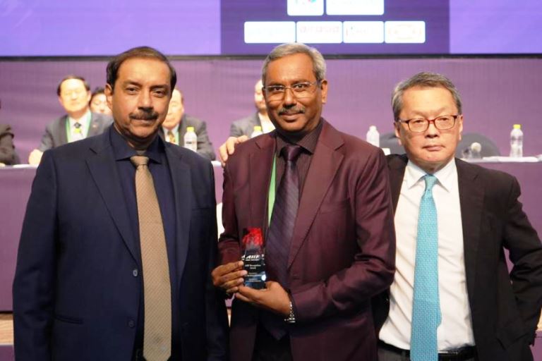 नई दिल्ली- 24 मार्च। कोरिया के मुंगयोंग में आयोजित एशियाई हॉकी महासंघ (एएचएफ) कांग्रेस में शुक्रवार को हॉकी इंडिया के महासचिव भोला नाथ सिंह को प्रतिष्ठित इमर्जिंग स्पोर्ट लीडर अवार्ड से सम्मानित किया गया।
