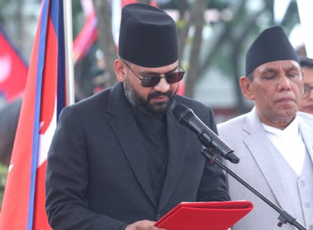 काठमांडू- 27 मार्च। राष्ट्रीय स्वतंत्र पार्टी के संसदीय दल के नेता बालेन्द्र शाह (बालेन) ने शुक्रवार को प्रधानमंत्री पद की शपथ ली। राष्ट्रपति रामचन्द्र पौडेल ने शीतल निवास में आयोजित विशेष समारोह में 36 वर्षीय बालेन को पद एवं गोपनीयता की शपथ दिलाई।