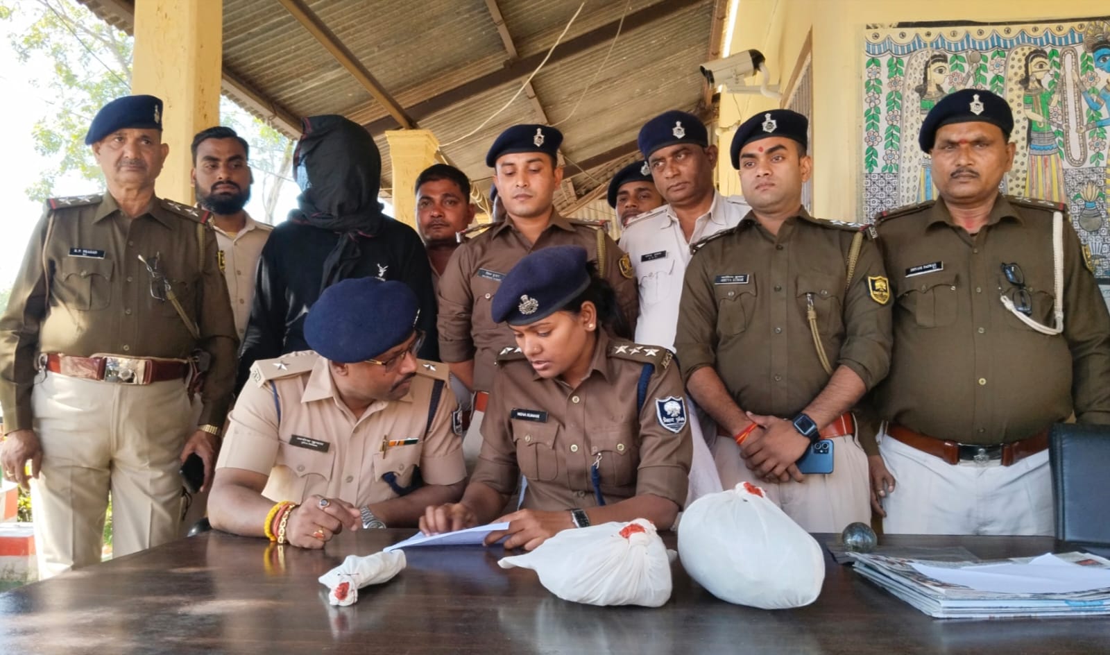 मधुबनी- 16 नवंबर। कई आपराधिक वारदातों में संलिप्त कुख्यात अपराधी को मधुबनी जिला अंतर्गत हरलाखी थाना पुलिस ने गिरफ्तार कर बड़ी सफलता हासिल किया है। गिरफ्तार अपराधी की पहचान नेपाल धनुषा जिला अंतर्गत फुलगामा थाना क्षेत्र के मुखियापट्टी गांव निवासी विमलेश यादव उर्फ टकला डॉन के रूप में किया गया है। इस संबंध में हरलाखी थाना पर पत्रकारों को जानकारी देते हुए एसडीपीओ नेहा कुमारी में बताया कि वुधवार की शाम गुप्त सूचना मिली कि विमलेश कुमार उर्फ टकला डॉन कमतौल गांव के तरफ से वह अपने गांव मुखियापट्टी जाने वाले हैं। जिसके बाद थानाध्यक्ष अनोज कुमार के नेतृत्व में पुअनि रौशन कुमार,प्रशिक्षु एसआई आदित्य कुमार,प्रीति कुमारी,एसआई आरपी यादव एवं हवलदार नरेश कुमार सहित टीम में शामिल अन्य पुलिस बल त्वरित कार्रवाई करते हुए सूचक के बताए गए निशानदेही पर चारों ओर घेराबंदी कर गिरफ्तार कर लिया। गिरफ्तार अपराधी के पास से एक देशी कट्टा,दो जिंदा कारतूस, डेढ़ किलो गांजा एवं बिना कागजात व नंबर प्लेट की पल्सर बाइक बरामद किया। वहीं एसडीपीओ ने बताया कि गिरफ्तार अपराधी के विरुद्ध हरलाखी थाना सहित कई थाने में हत्या,लूट,डकैती सहित आधा दर्जन से अधिक प्राथमिक की दर्ज है। प्राप्त जानकारी के अनुसार करीब छह माह पूर्व नेपाल में एक बैंक में डकैती की घटना को अंजाम देकर फरार हो गया था। जिसके बाद नेपाल पुलिस भी कुख्यात अपराधी टकला डॉन की गिरफ्तारी के लिए खाक छान रही थी।