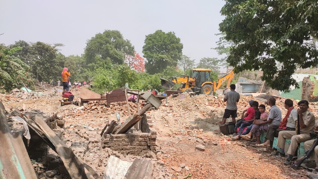 BIHAR:- अवैध अतिक्रमित 140 घर पर बगहा प्रशासन का चला बुलडोजर