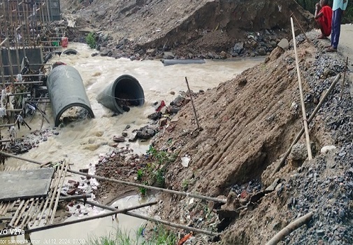 औरंगाबाद- 15 जुलाई। औरंगाबाद में निर्माणाधीन पुल का डायवर्सन बह गया। डायवर्सन के टूटने के कारण साेमवार काे इस इलाके के कई गांवों का संपर्क जिला मुख्यालय से भंग हो गया है। डायवर्सन के पानी में बहने के बाद इलाके के लोगों को भारी परेशानी का सामना करना पड़ रहा है।