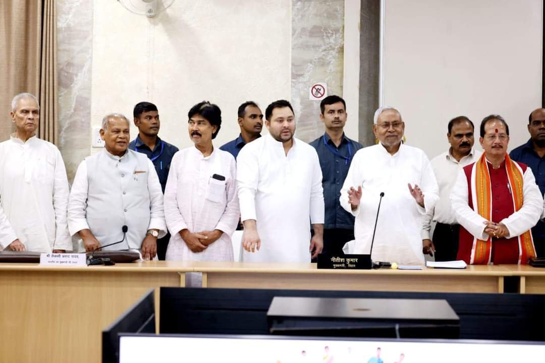 पटना- 03 अक्टूबर। जाति आधारित गणना के प्रकाशित होने के बाद मंगलवार को मुख्यमंत्री नीतीश कुमार की अध्यक्षता में हुई सर्वदलीय बैठक में नौ दलों के नेता शामिल हुए। बैठक में जातीय गणना की रिपोर्ट पर चर्चा की गयी और सभी दलों से राय ली गयी। भाजपा का प्रतिनिधित्व करते हुए विजय कुमार सिन्हा ने आर्थिक सर्वेक्षण भी जारी करने की बात कही।