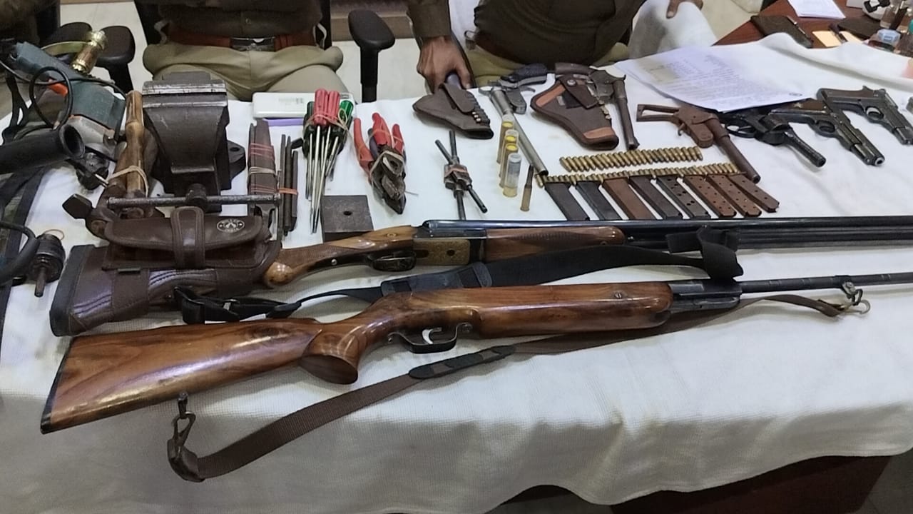 गिरफ्तार लोगों में मो सलाउद्दीन, राजा उर्फ तनवीर आलम, मो० फैजीउर रहमान और मो० आशीफ शामिल हैं। इस दौरान जब्त किए गए सामानों में पिस्टल 2, रिवाल्वर 1, कारतूस 7.65 एम एम 51, देशी कट्टा 03, कारतूस 7.62 एम एम 22, एयर गन 1, कारतूस 08 एम एम 1, दोनाली बंदूक 1, कारतूस 6.36 एम एम 03, मैगजीन 08, कारतूस 70 एम एम 06, 9 एम एम का गोली रखने वाला डब्बा 01, ग्राईंडर 02, कटर (ड्रीलिंग मशीन), 02 चीमटा, 06 छेनी पेचकश 12 इत्यादि शामिल हैं।