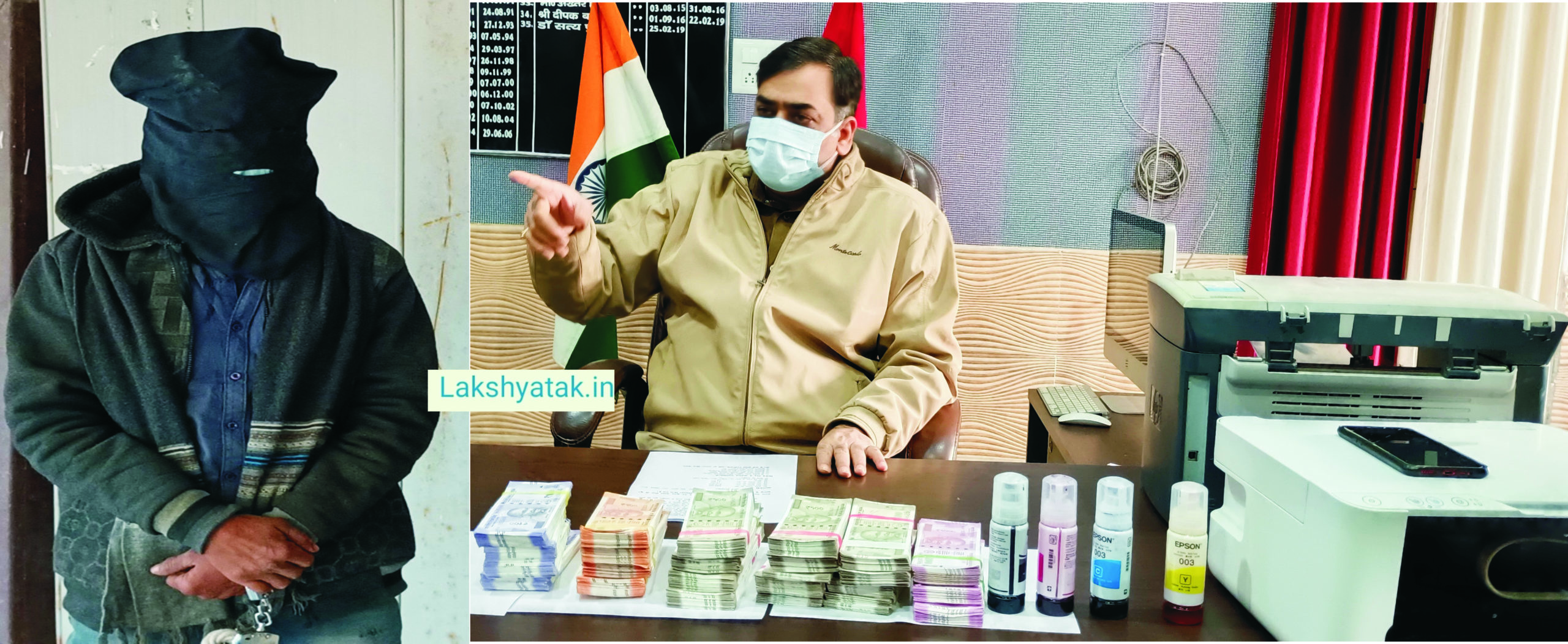 बरामद किए गए जाली नोट व समाग्री—
