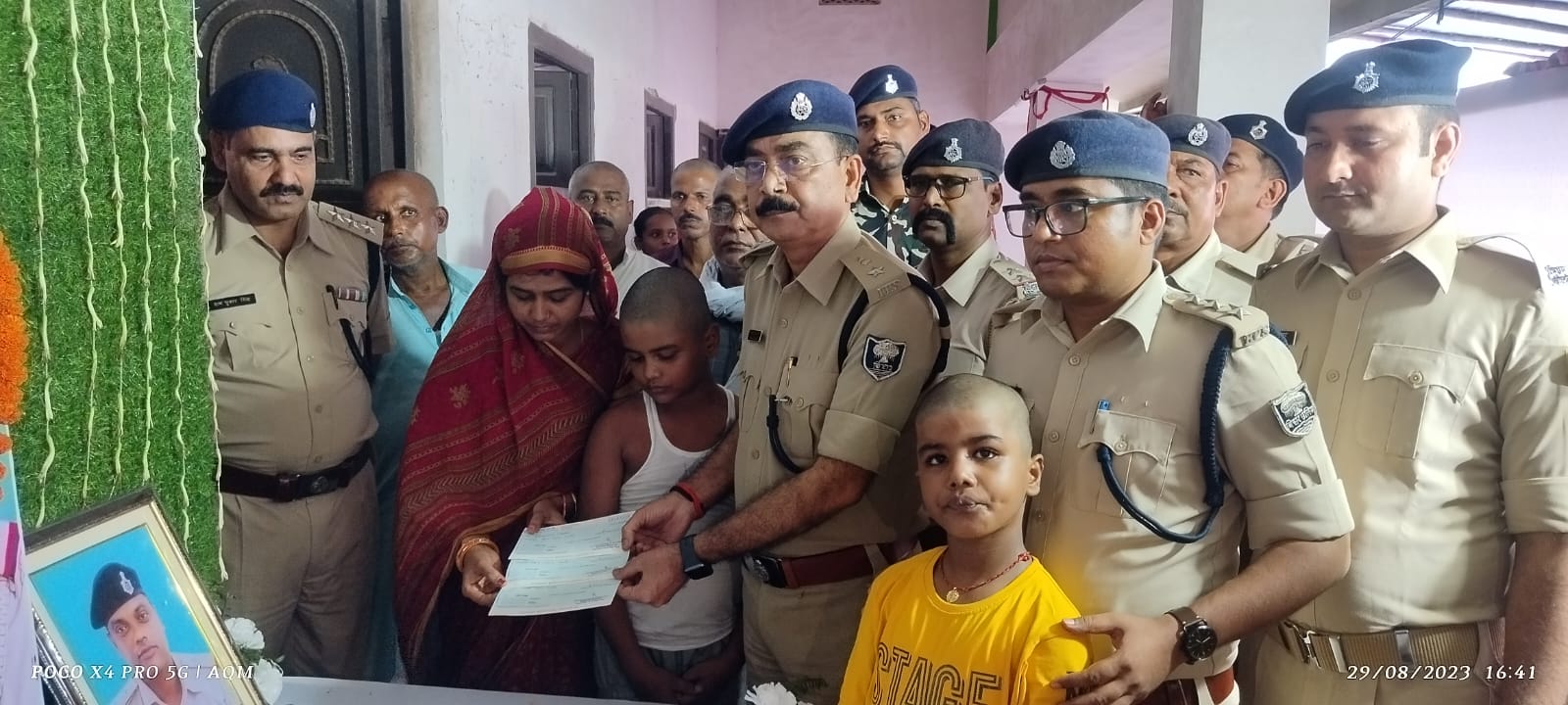 BIHAR:- शहीद थानाध्यक्ष के आश्रित को एसपी ने घर पर जाकर सौंपा 25 लाख रुपये का चेक