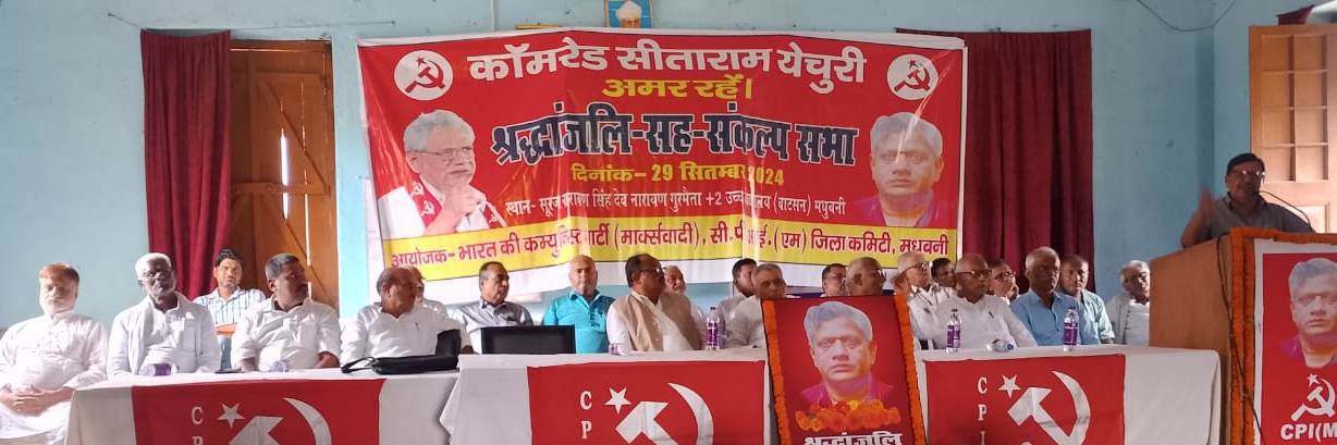 BIHAR:- सीताराम येचुरी के निधन पर मधुबनी में सर्वदलीय श्रद्धांजलि सह संकल्प सभा का आयोजन, वक्तााओं ने कहा- धर्मनिरपेक्ष दलों को एकजुटता के लिए सदैव तत्पर रहे येचुरी
