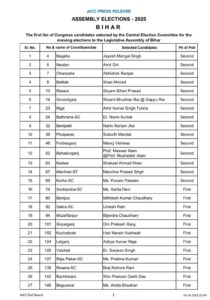 बिहार चुनाव:- कांग्रेस ने 48 प्रत्याशियों की लिस्ट जारी की, बेनीपट्टी से नलिनी रंजन झा व फुलपरास से सुबोध मंडल का नाम शामिल
