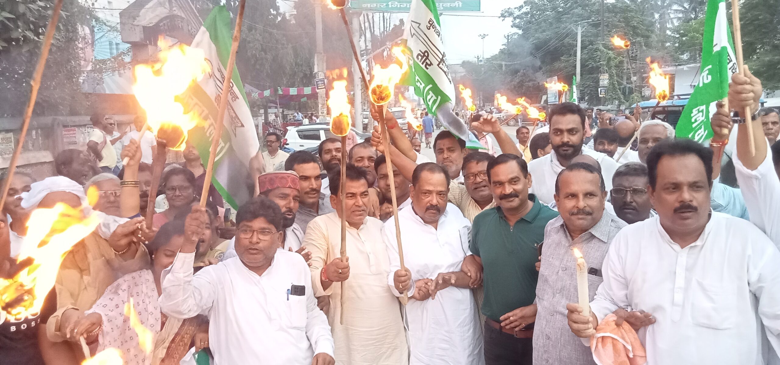 BJP के खिलाफ जदयू कार्यकर्ताओं ने निकाला कैंडल मार्च, पूर्व MLC बिनोद सिंह ने कहा- केन्द्र सरकार आरक्षण विरोधी