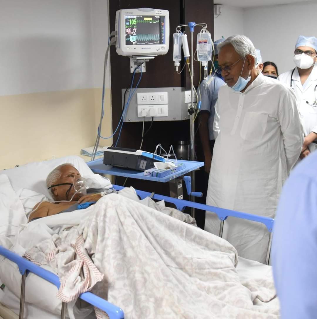 पटना- 06 जुलाई। मुख्यमंत्री नीतीश कुमार ने बुधवार को पारस अस्पताल में भर्ती राजद सुप्रीमो लालू यादव से मुलाकात की।
