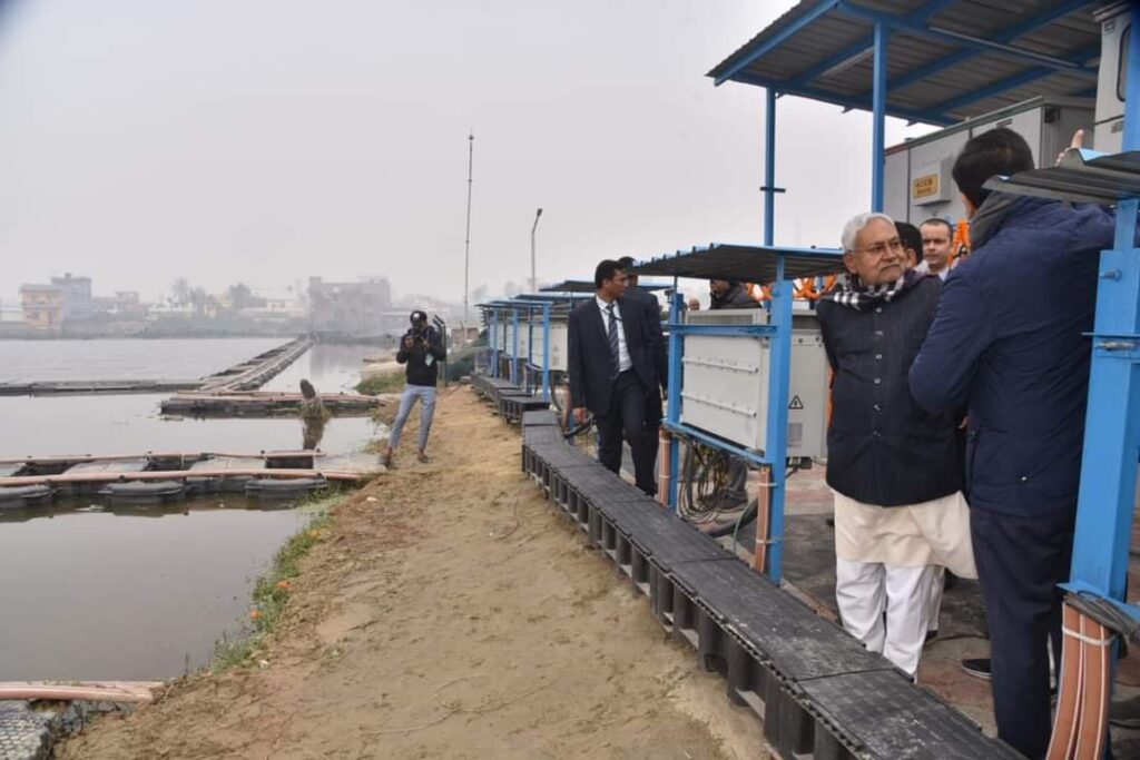 मुख्यमंत्री ने दरभंगा जिला मुख्यालय स्थित कादिराबाद में जल-जीवन-हरियाली योजना अंतर्गत स्थापित 1.6 मेगावाट क्षमता वाले फ्लोटिंग सोलर पावर प्लांट का निरीक्षण किया। निरीक्षण के दौरान ऊर्जा विभाग के प्रधान सचिव संजीव हंस ने मुख्यमंत्री को विस्तृत जानकारी दी। इस दौरान मुख्यमंत्री ने कहा कि सोलर प्लेट के बीच थोड़ा गैप रखें और जल के सतह से सोलर प्लेट को और अधिक ऊंचा रखने का प्रबंध करें। उन्होंने कहा कि सौर ऊर्जा असली और अक्षय ऊर्जा है, इसको अधिक से अधिक बढ़ावा दें।