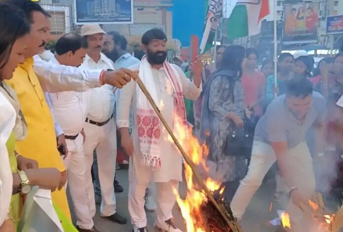विरोध मार्च अनुसूचित जाति विभाग के प्रदेश अध्यक्ष केदार पासवान के नेतृत्व में कांग्रेस भवन से शुरू होकर अल्बर्ट एक्का चौक तक निकाला गया।