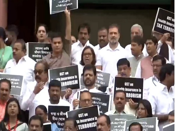 GST के मुद्दे पर इंडी गठबंधन के सांसदाें ने संसद के मकर द्वार के बाहर प्रदर्शन किया