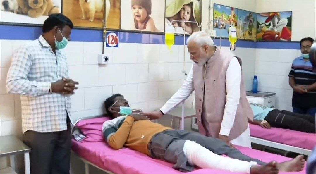 इसके बाद वे सिविल अस्पताल में भर्ती 6 लोगों से मिले। घायलों के समीप खड़े उनके परिजनों से भी बातचीत की। पीएम मोदी ने सिविल अस्पताल में ही हादसे में मृत लोगों के परिजनों से मुलाकात कर उन्हें आश्वासन दिया। पीएम ने हादसे में मारे गए 23 मृतकों के परिजनों से मुलाकात कर उन्हें सांत्वना दी।