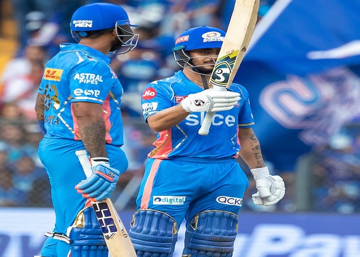ईशान ने अपनी पारी में 5 छक्के और 5 चौके लगाए। इसके बाद फार्म में वापसी करते सूर्यकुमार यादव ने तिलक वर्मा के साथ मिलकर टीम के स्कोर को 10 ओवर में 100 के पार पहुंचाया। मुम्बई का तीसरा विकेट तिलक वर्मा के रूप में गिरा। तिलक 25 गेंदों में 30 रन बनाकर आउट हुए। टीम जीत के करीब पहुंची ही थी कि सुर्यकुमार यादव 25 गेंदों में 43 रन की अच्छी पारी खेलकर आउट हो गए। इसके बाद नेहाल वढेरा 6 रन बनाकर आउट हो गए। अंत में टिम डेविड ने टीम को जीत दिला दी। टिम डेविड 24 रन बनाकर नाबाद रहे।