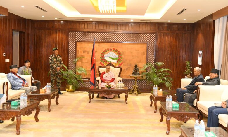 बैठक में नेपाली कांग्रेस के अध्यक्ष शेरबहादुर देउबा, नेकपा (एमाले) के अध्यक्ष केपी शर्मा ओली और नेकपा के संयोजक पुष्पकमल दाहाल ‘प्रचंड’ उपस्थित थे। इसके अलावा सूचना तथा संचार प्रौद्योगिकी मंत्री जगदीश खरेल भी बैठक में मौजूद रहे।